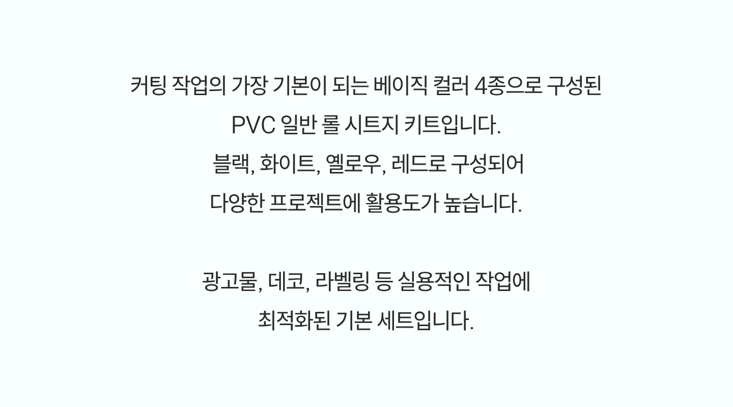 광고물, 데코, 라벨링 등 실용적인 작업에 최적화된 기본 세트입니다.