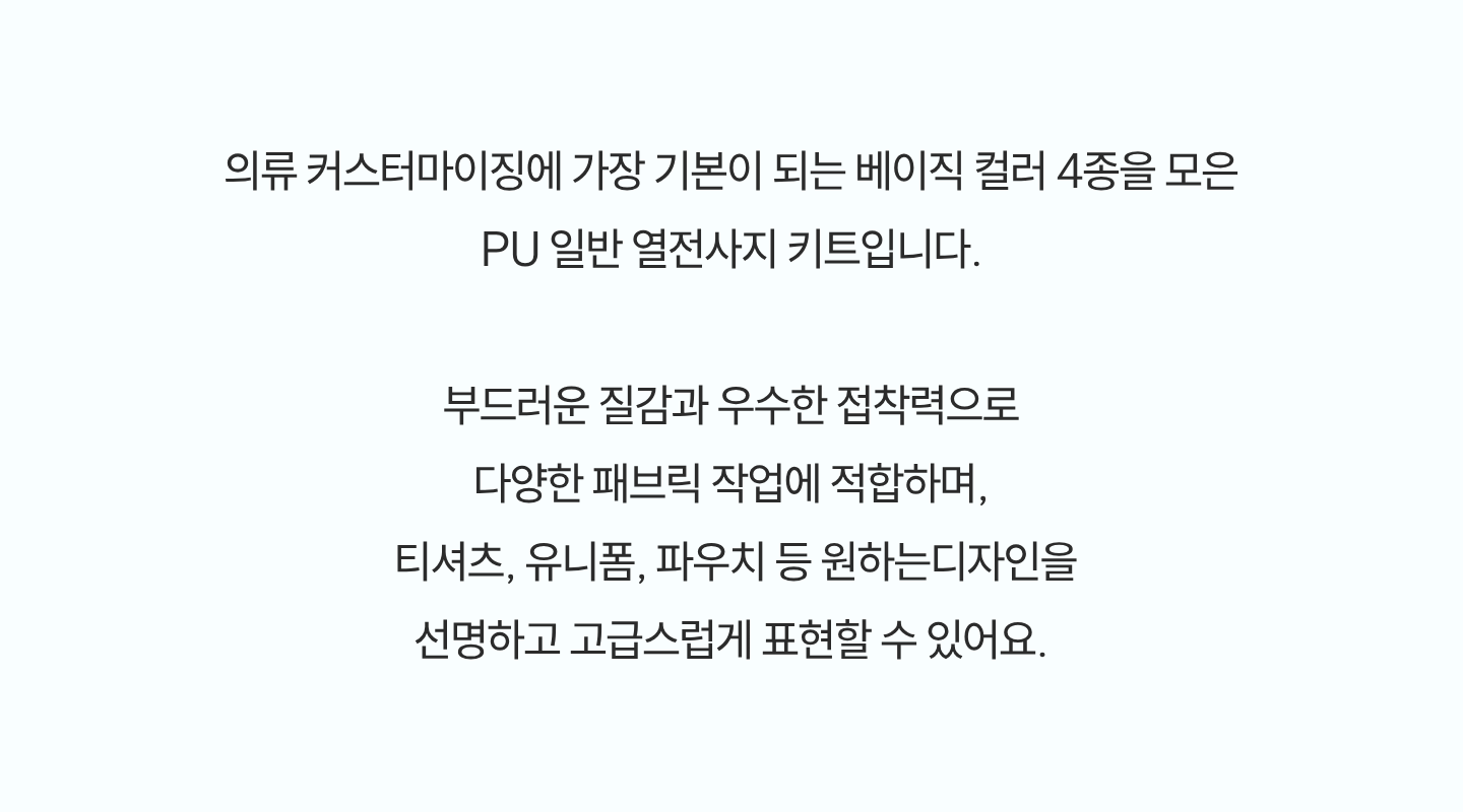 PU 일반 열전사지 (낱장) 키트 - (25 x 30cm) 운동복 의류 티셔츠 잡화 가방 전사필름 전사용 필름