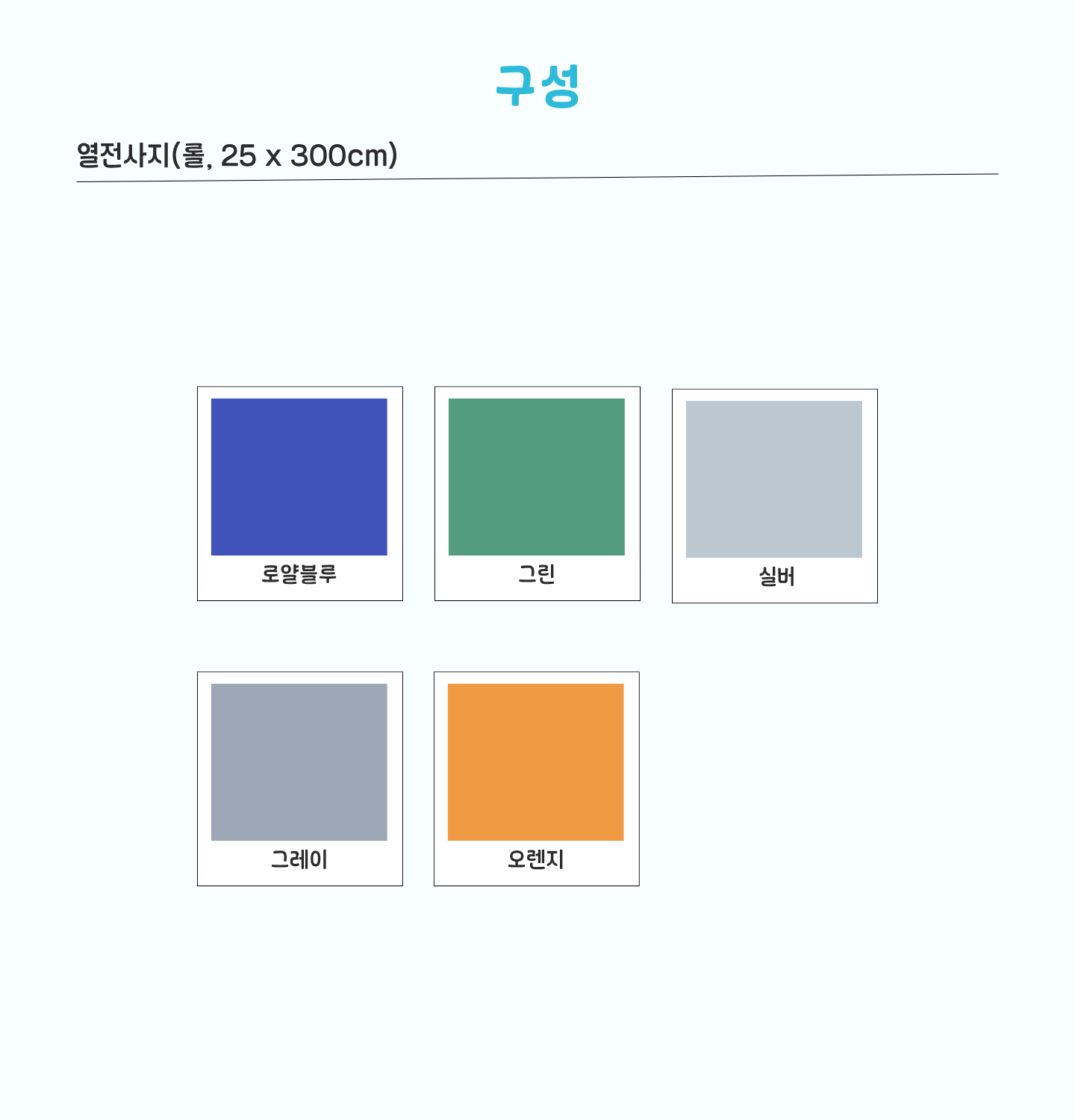 : 로얄블루, 그린, 실버, 그레이, 오렌지